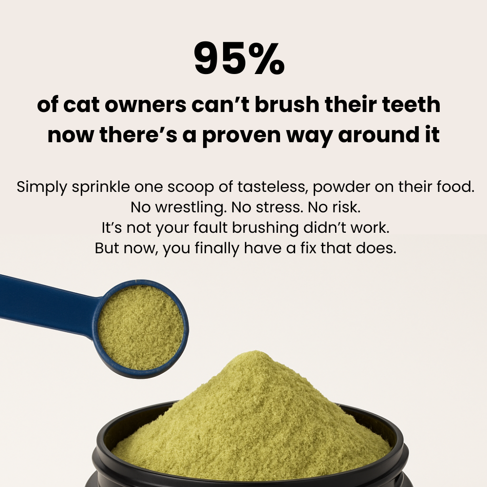 95% of cat owners fail at traditional dental care - not because they don't care, but because cats' mouths work differently than dogs or humans.